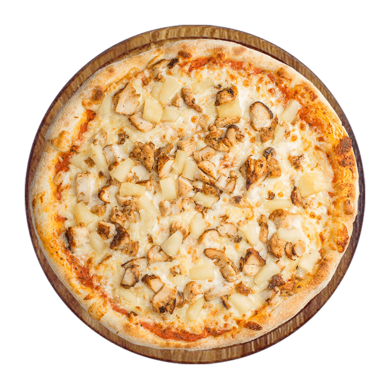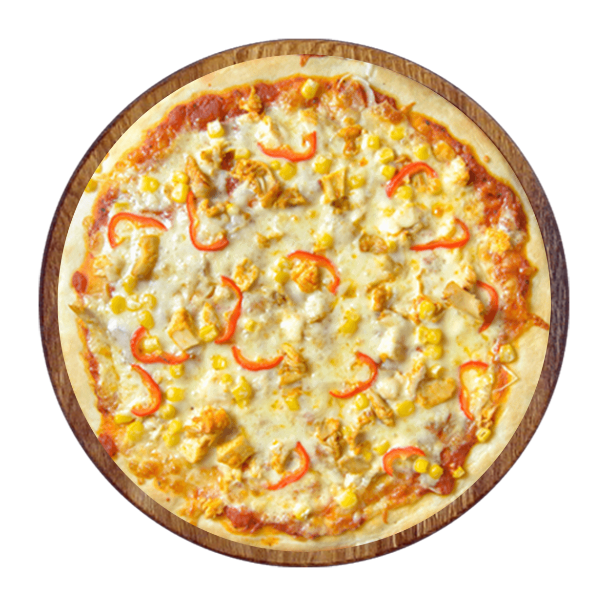 Sauce chili thaï, mozzarella, viande hachée, poulet rôti, poivrons.