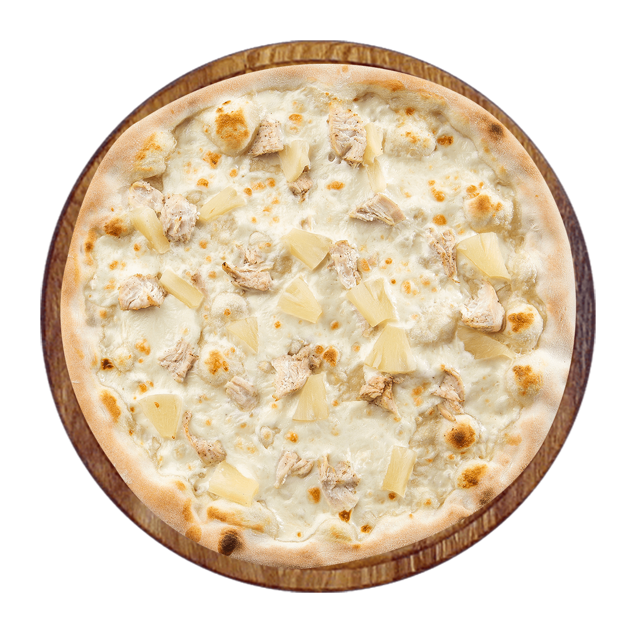 Crème fraîche, mozzarella, poulet, poivrons, pommes de terre, sauce fromagère.